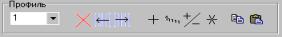 Выбор номера слоя осуществляется при помощи выпадающего меню расположенного в левой части группы кнопок с общим названием “Профиль”. Эта группа кнопок предназначена для редактирования данных в профиле: